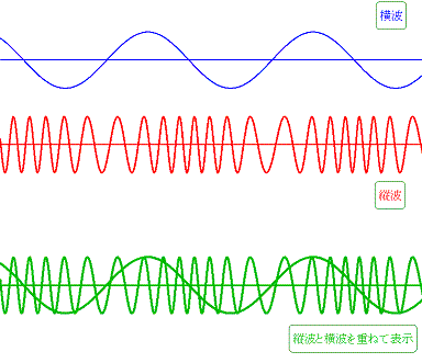 ただ、縦波は表示上横波の位相をずらすことで表しています。