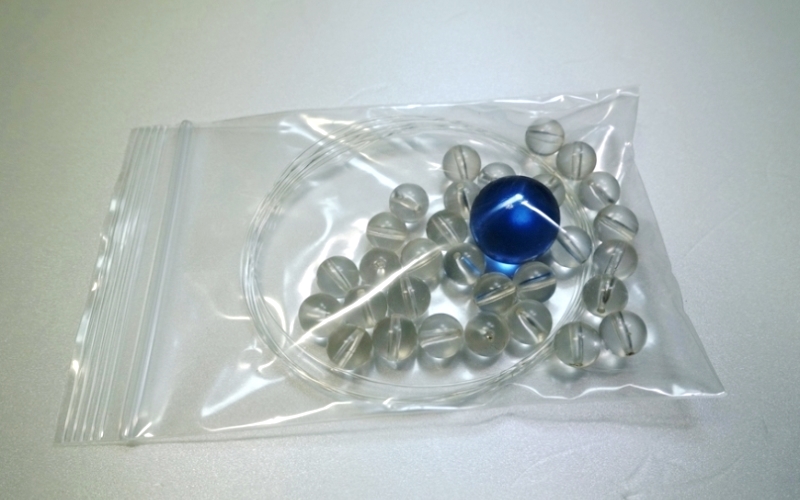 ・ プラスチック ビーズ 30個 (直径12mm,2mm貫通穴) ・ テグス(1本1500mm) ・ ビー玉(25mm,色指定無)写真は、青色 |