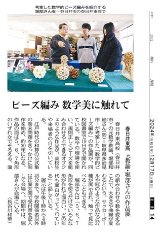 昨日の中日新聞の取材記事が近郊版に掲載されました。 ![]() [ CLICK ] 電子版のデータを利用しています。 【PDF】 ・・・12月16日(月)・・・(展示6日目)今週は13:00〜16:45となりました・・・