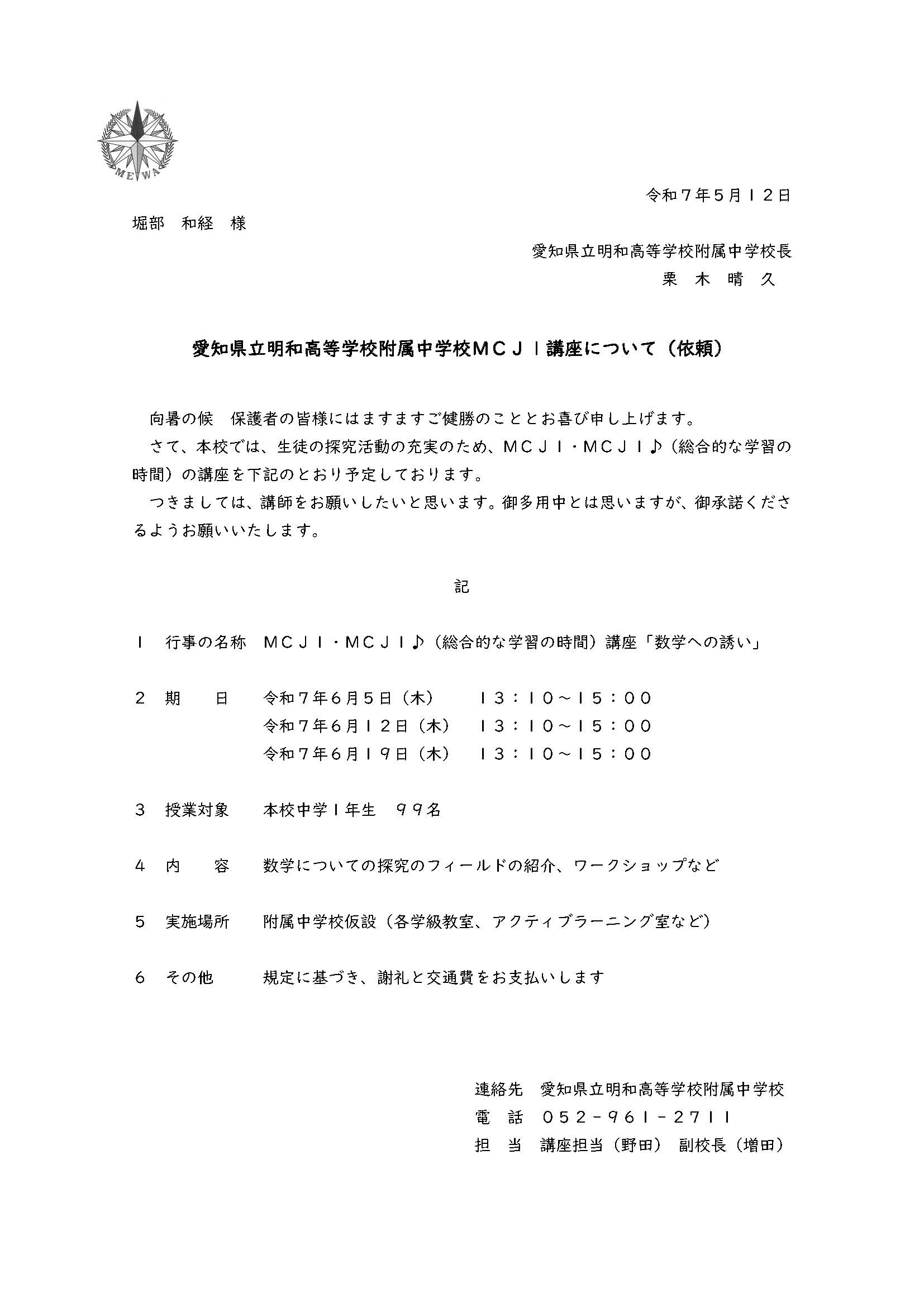 数学的ビーズ編み(関係を含む)講演 愛知県立明和高等学校附属中学校