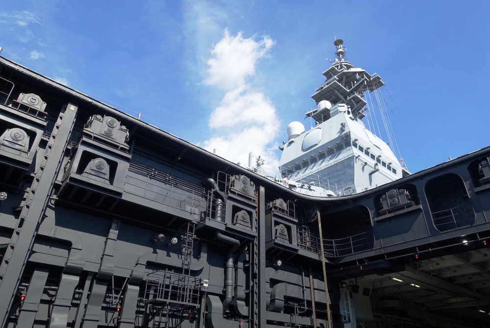 (4)エレベータ上昇開始時、仰角で艦橋を見る |