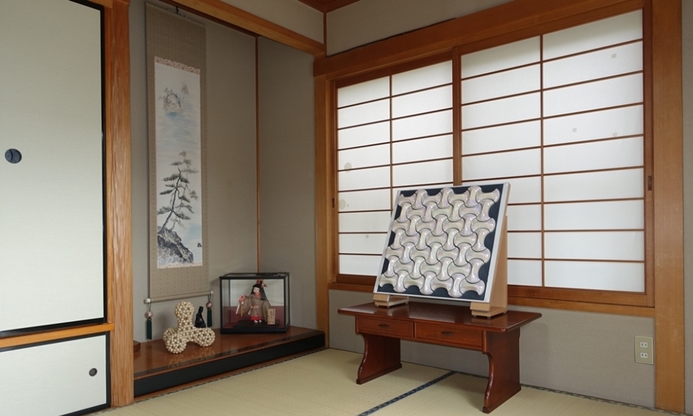 (17)スタンドにしたので、置く場所が自由になり、座敷に置いてみた。シリコンのゴム足も付けました。 |
