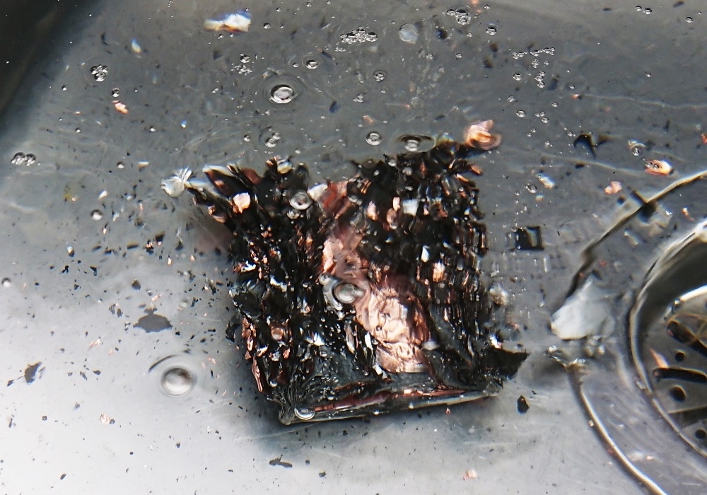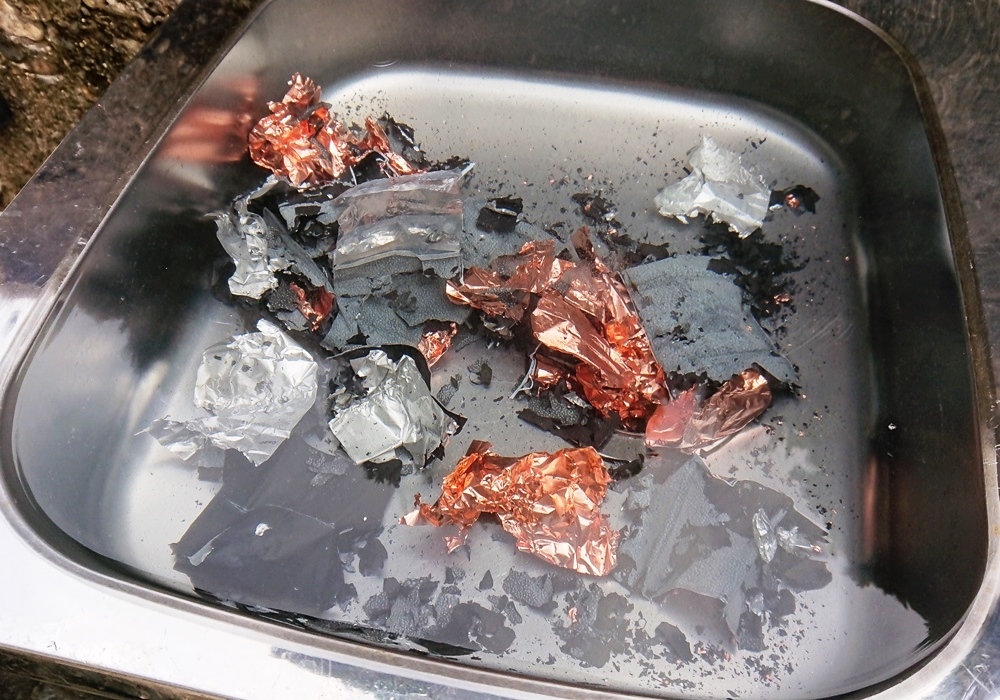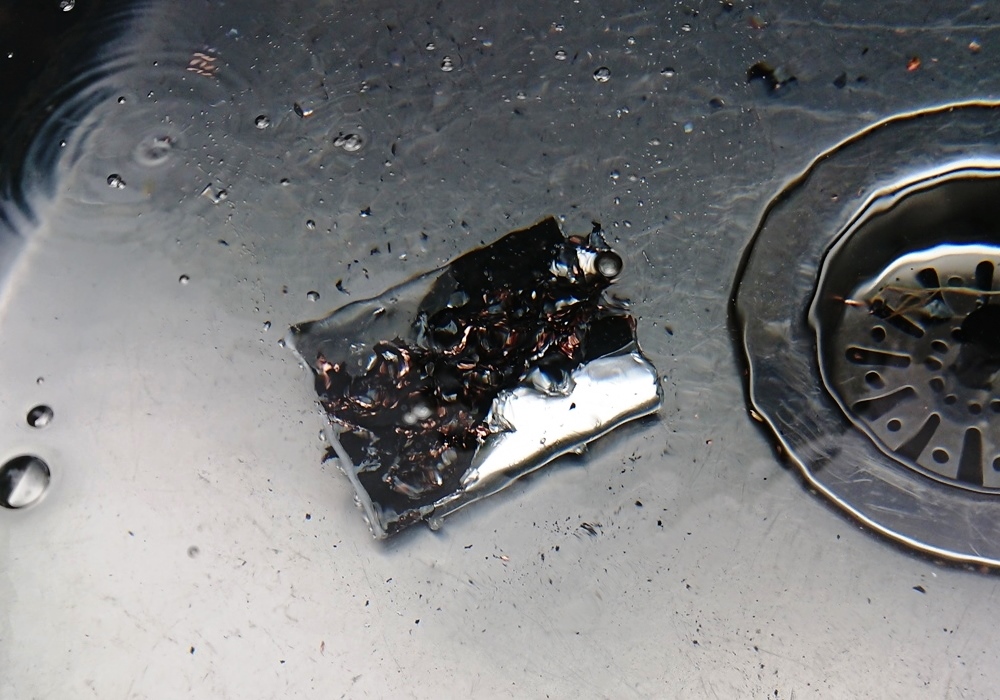 (6)電池の中央部分までしっかりと水が入り込み、反応が終わったようだ。 |