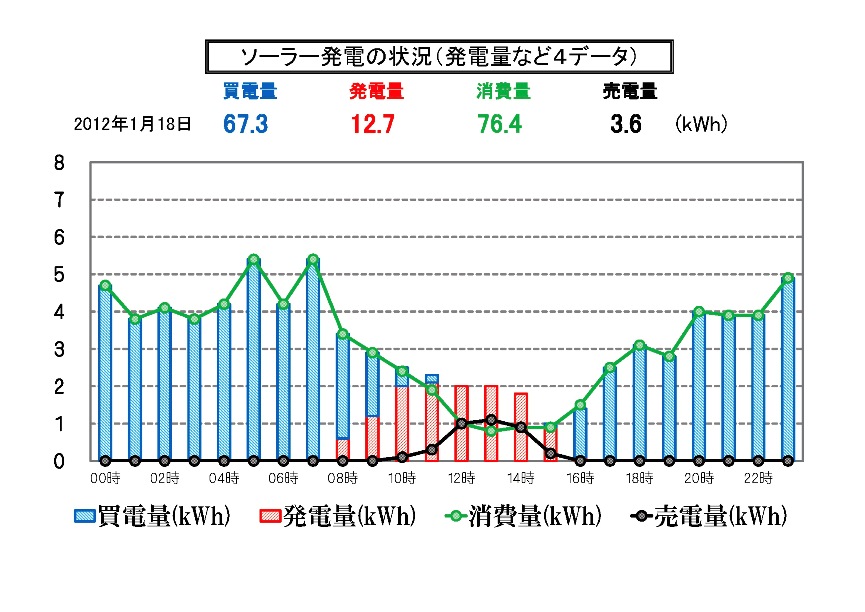我が家では、10数年前からシャープのソーラー発電システムを屋根にのせていました。 今回(2011/11)屋根を直すついでに、システムを更新しました。 以前は、発電に関するデータを集める事は、大変で現実にはほぼ無理だったのです。 しかし、シャープがWEBでデータをオンラインでチェックするシステムを開発したのに伴って、 簡単に、発電量、売電量、売電量、使用量のデータを手に入れることが出来ました。 設置から、約40日経過したので、データをグラフ化して掲載します。 アップしたデータは、PDF42ページになります。・・・1.7MB エクセルデータも、アップしました。・・・181KB |
