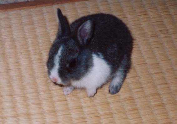 うちの、ウサギの「3番目」ちゃんの写真が出来た。やっぱりかわいい。畳の目の大きさと比べるとウサギの小ささが分かると思う。まだ完全に離乳していない。牛乳をまだ飲んでいる。キャベツの葉っぱをひとかけらぐらい食べるようになった。