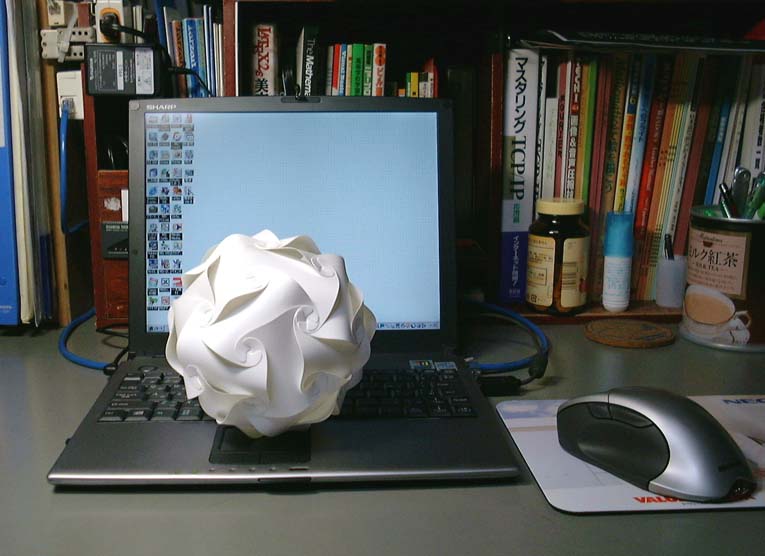 厚ケント紙で、60面体を1つ作ってみる。やはり、厚みの差は出来に大きく作用する。がっしりしていて、それに、できあがりも重い。うーん、大きい作品を作り直したくなりますね。これは、・・・。