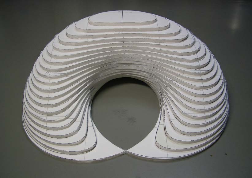 トーラスをカットした模型の半分を完成。