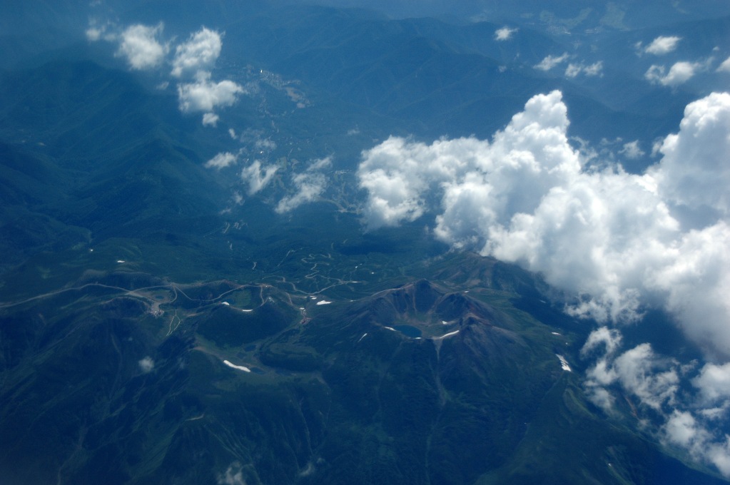 右の写真は、行きのJAL3141から撮った乗鞍の畳平や剣ヶ峰です。すごく、はっきり写りました。