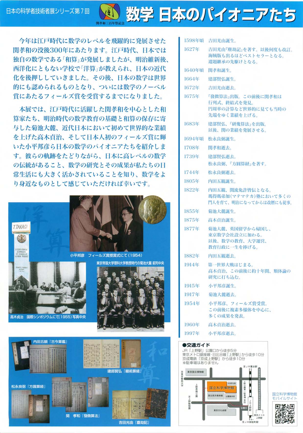 「数学 日本のパイオニアたち」パンフ1、2を見に行く。
