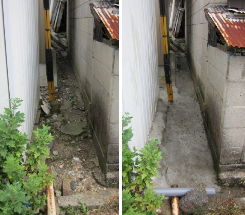 写真は、11日に作った隣地との間の溝のコンクリート。