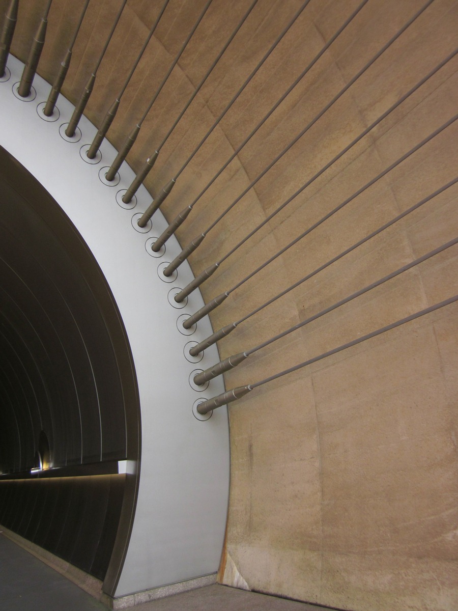 トンネルが、ブリッジ(斜張橋)のアンカーとなっている。その接合部。