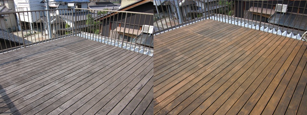 我が家のベランダ?(テラス?)の木部のメンテナンス。