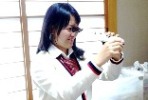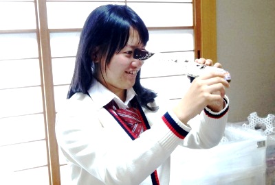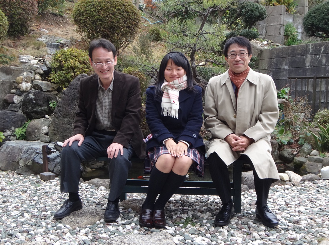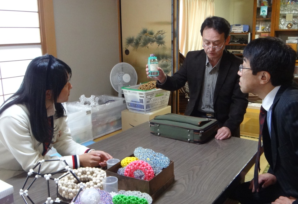 産業技術総合研究所の小野さんと,立命館高校の早苗先生と3年生の生徒:木下さん,来多。
