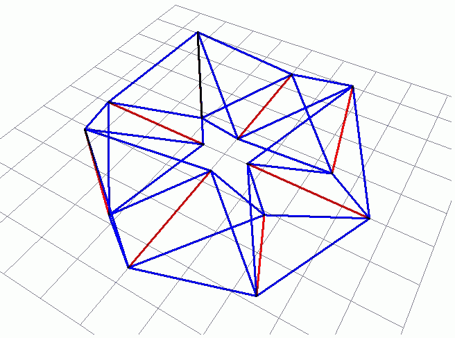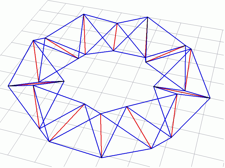 そして、環状につながった四面体群が回転する様子の計算ができた。