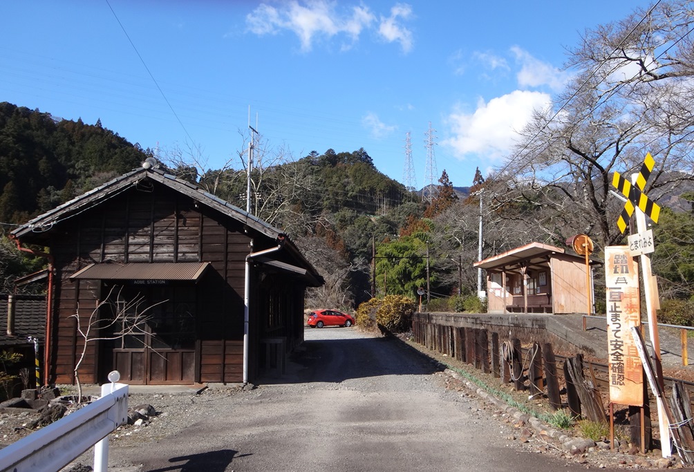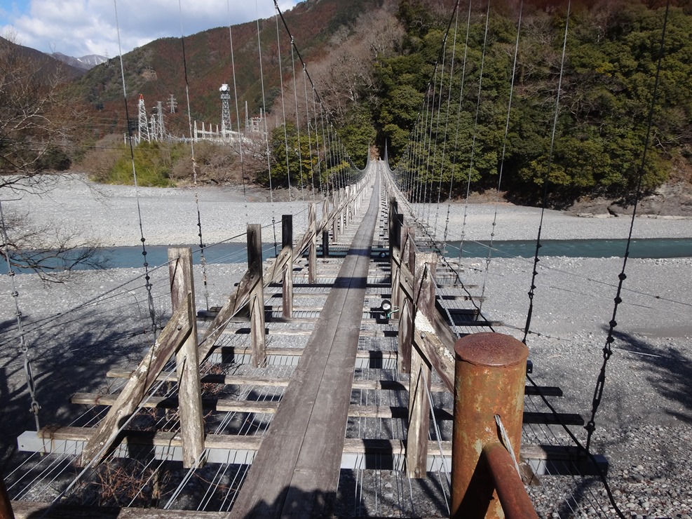 大井川鐵道・青部駅と青部の吊橋(正式名称は「ハタマ橋」)