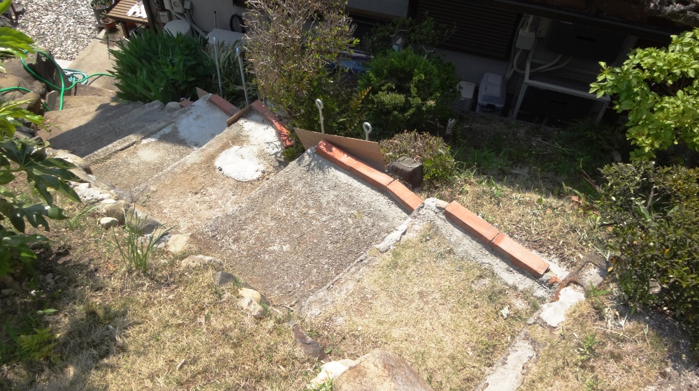 庭の階段の「す(ジャンカ)」を2段分直す。