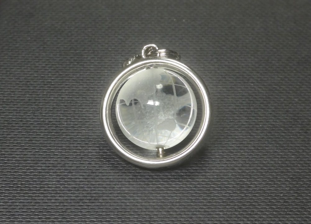 一目見て気に入ったガラス製の地球儀型アクセサリー・・・自分で直してピンタイプにしたもの。