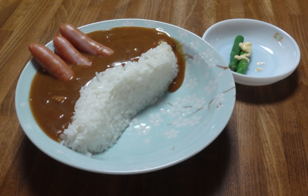ソーセージを3本入れたので,ダムが端から「決壊」しちゃいました。