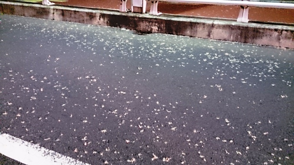 駅に行く途中の橋で,かげろう?の羽化に出会う。