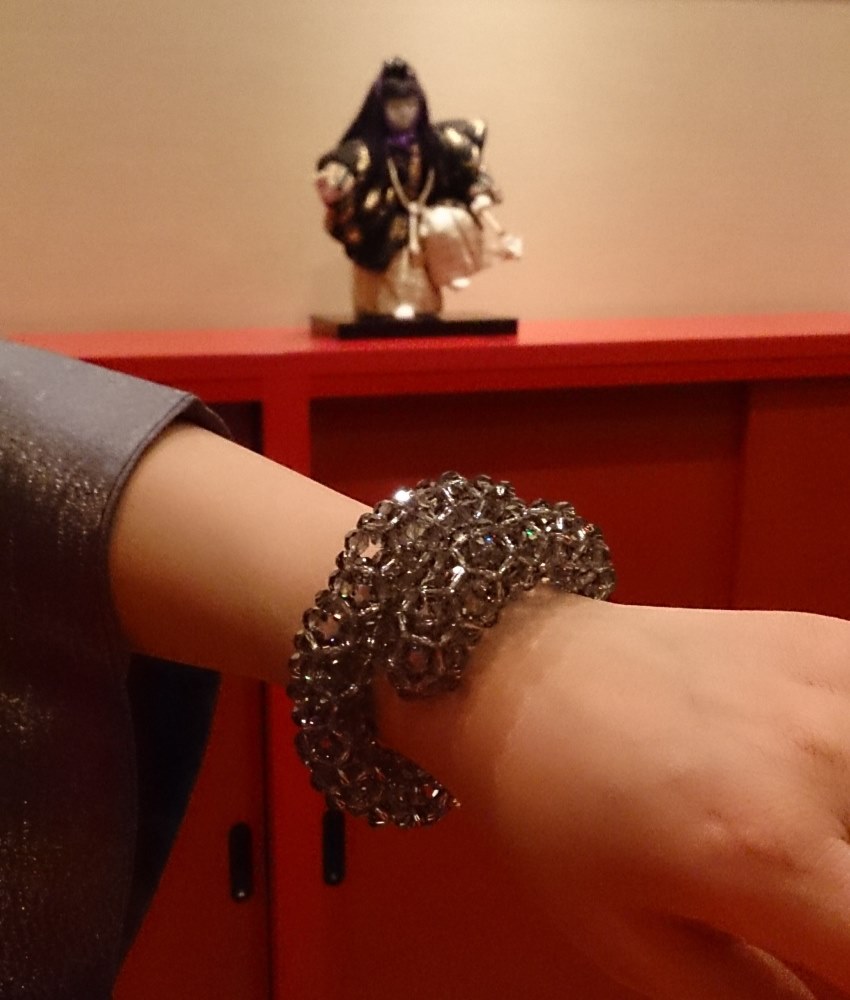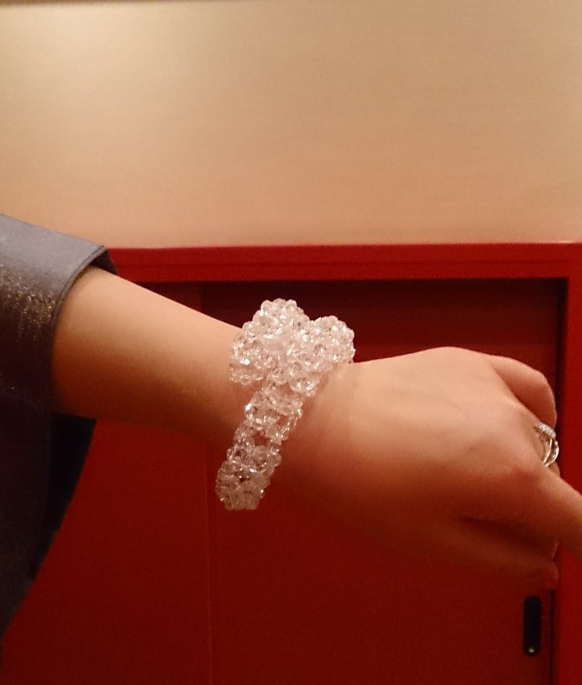 SWAROVSKI #5000 のクリアーと黒で作ったブレスレット。