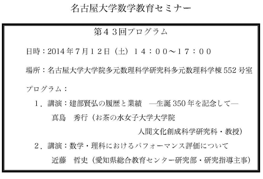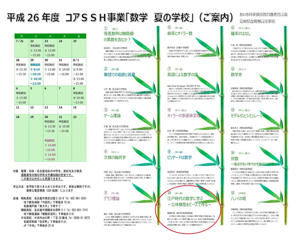 平成26年度 コアSSH事業「数学 夏の学校」I