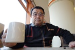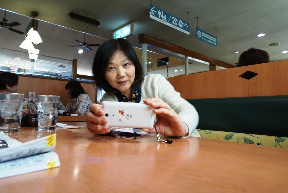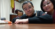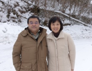 多治見のデニーズでの妻と、木曽三川公演での私。