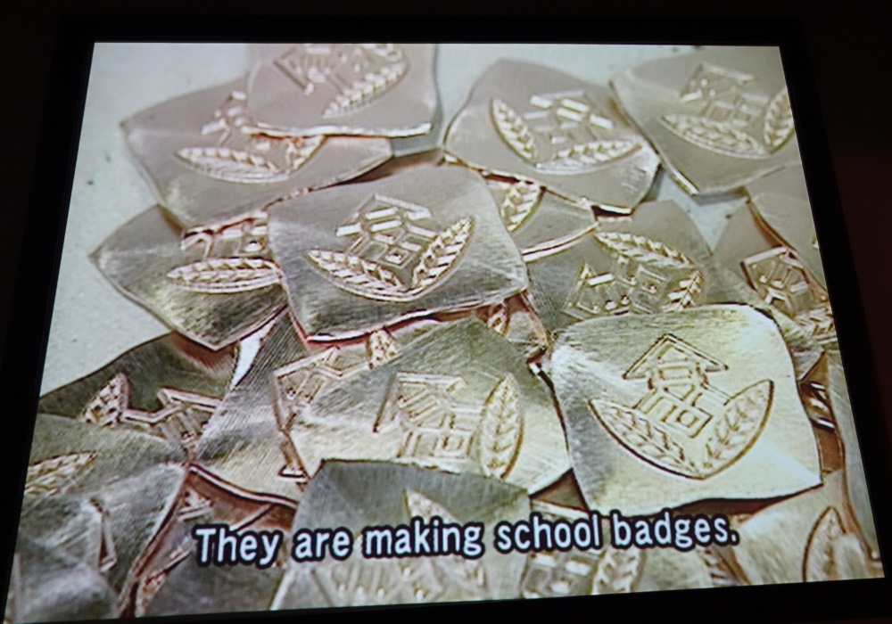 高蔵寺高校の校章(帽章?)の製作風景がありました。