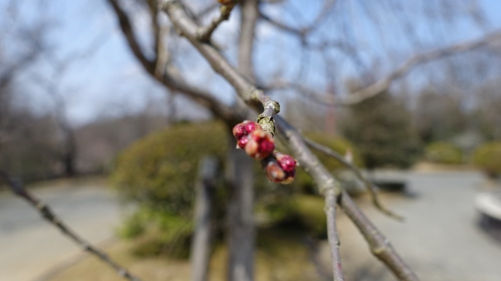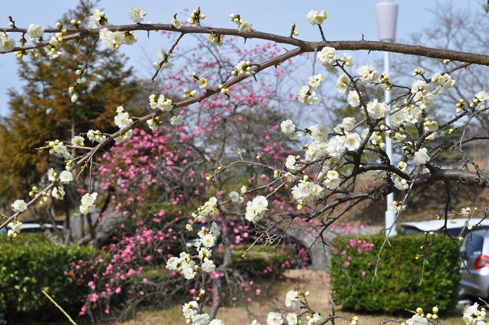 合格発表の日、校庭の紅梅と白梅が咲いていた。