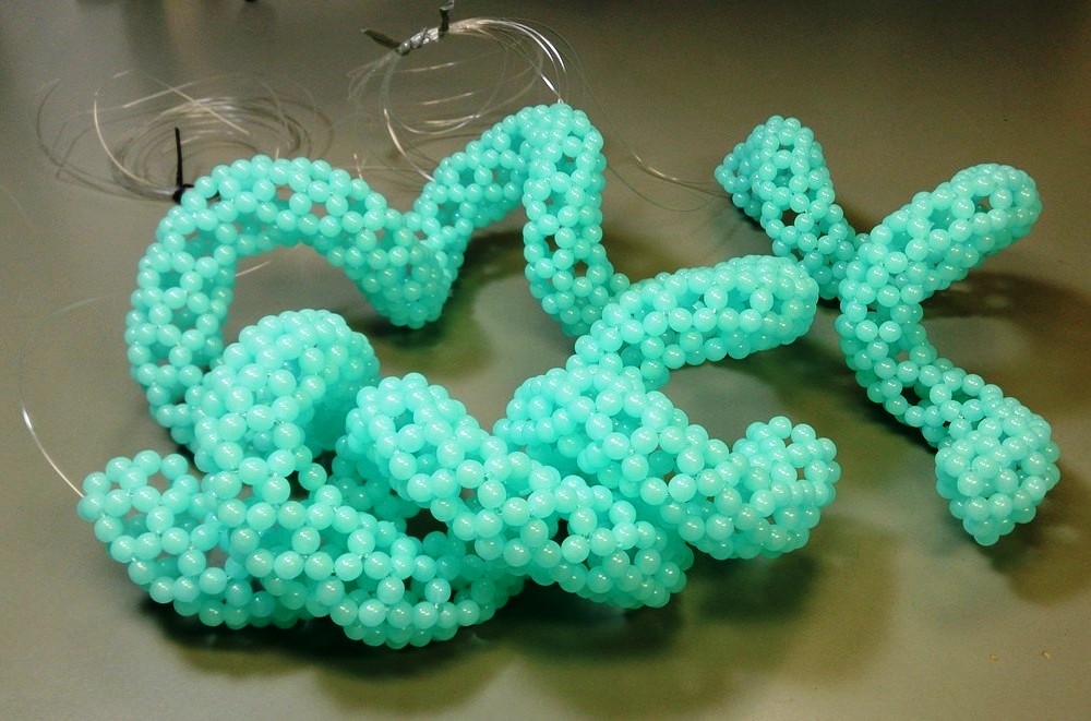 作っている、「直線とねじれ」ビーズ。