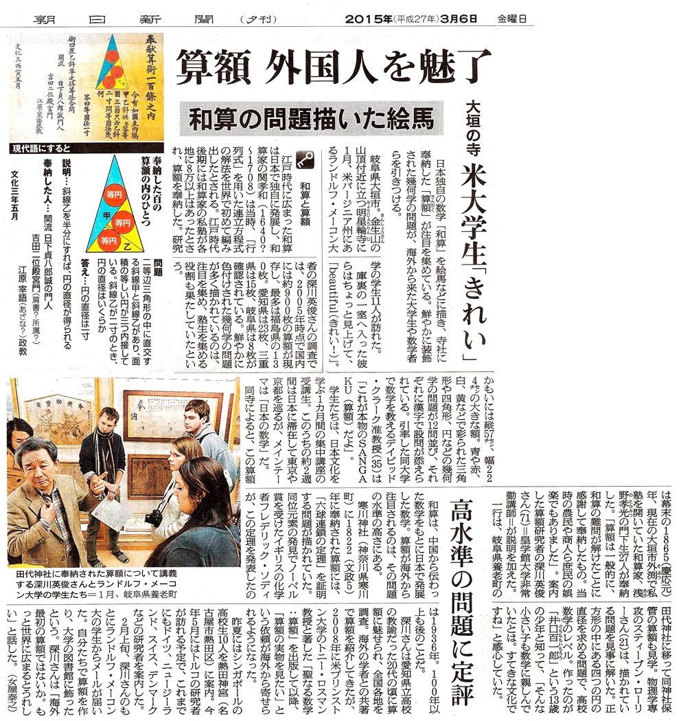 深川先生・朝日新聞の記事。【別窓PDF】