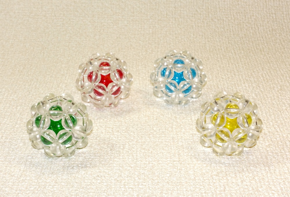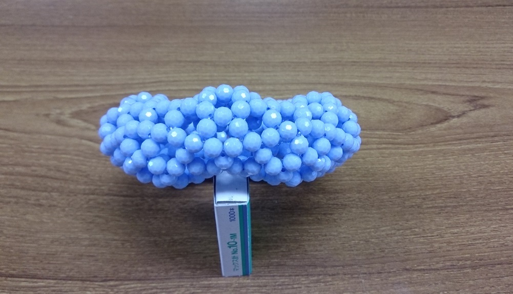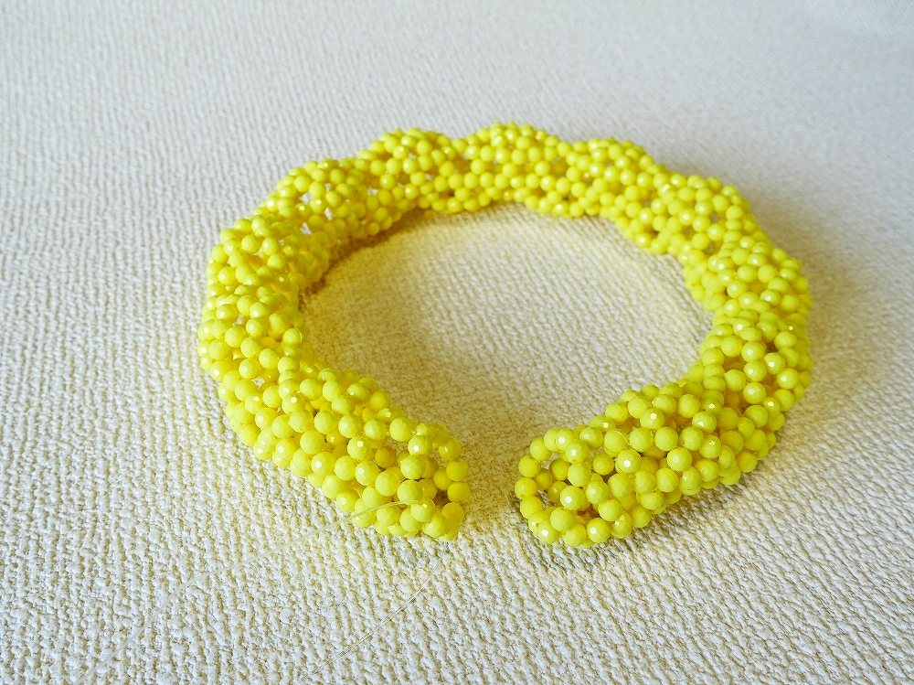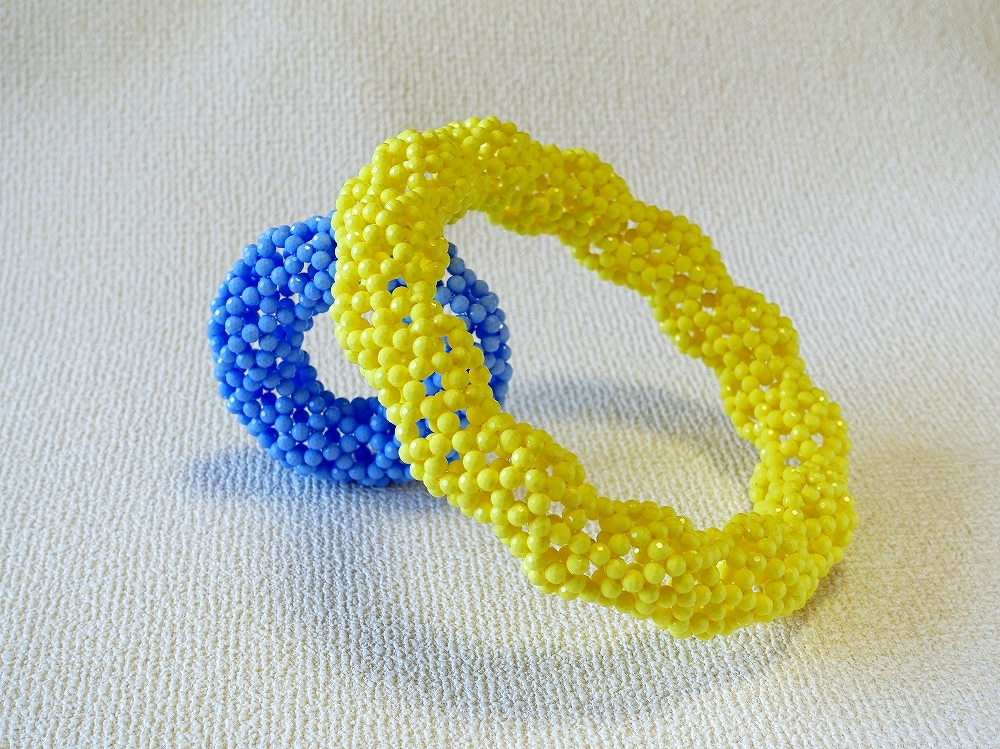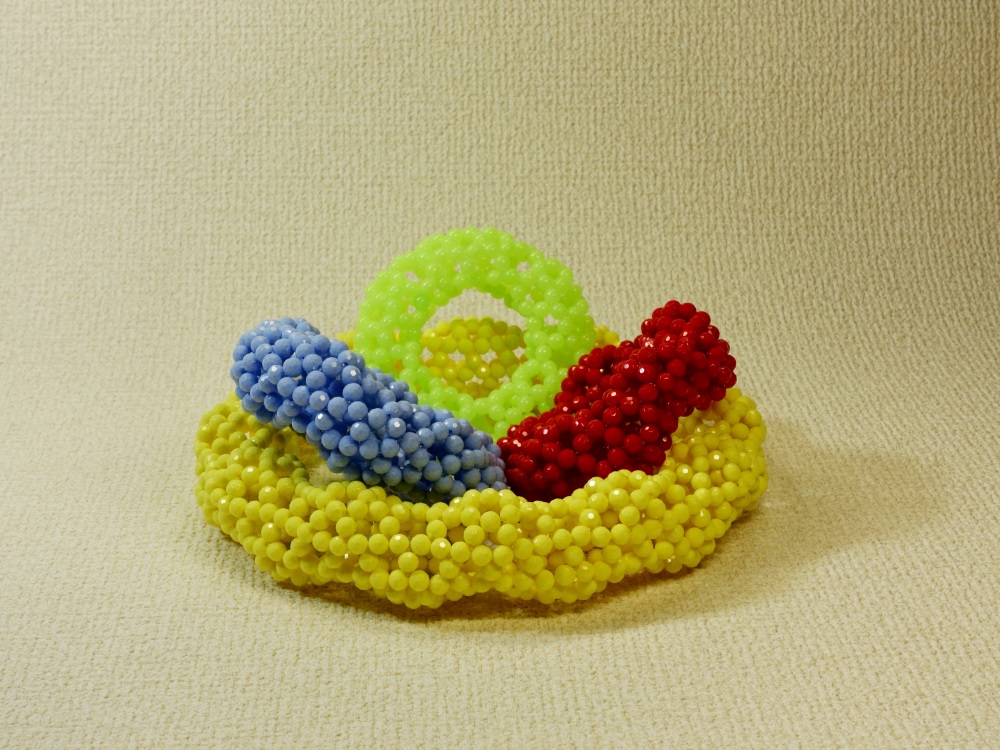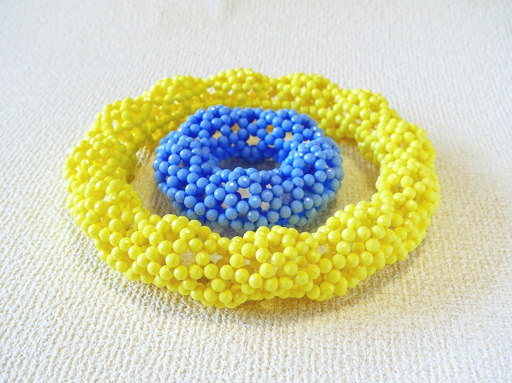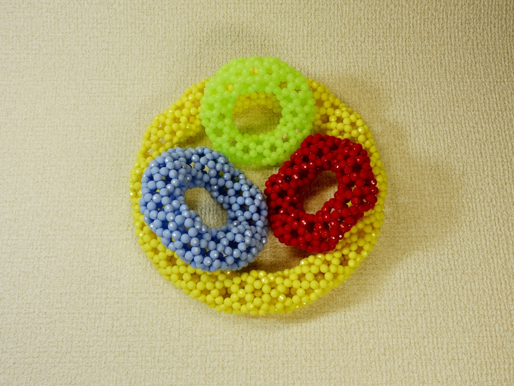 来週実施する秋田でのワークシヨップで作るビーズ編み。4色。