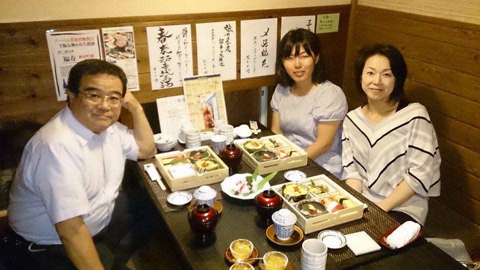 まず(1)職場に行き土曜補習の先生たちへ激励。(妻は、車で待機)