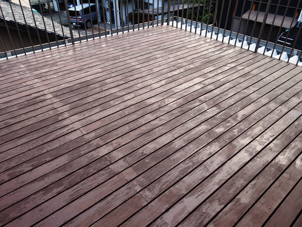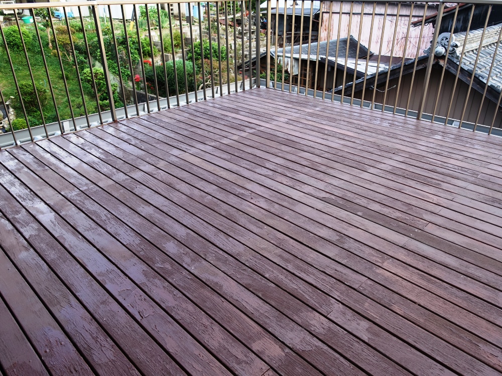 自宅二階のベランダ(テラスか?)の塗装を3年ほどメンテしてなかった。