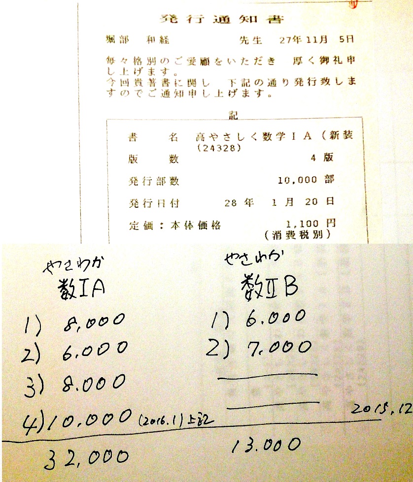 文英堂から、「やさしくわかりやすい数学TA」の増刷、4刷 10000部 が来年1/20に増刷らしい。