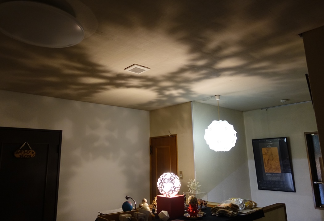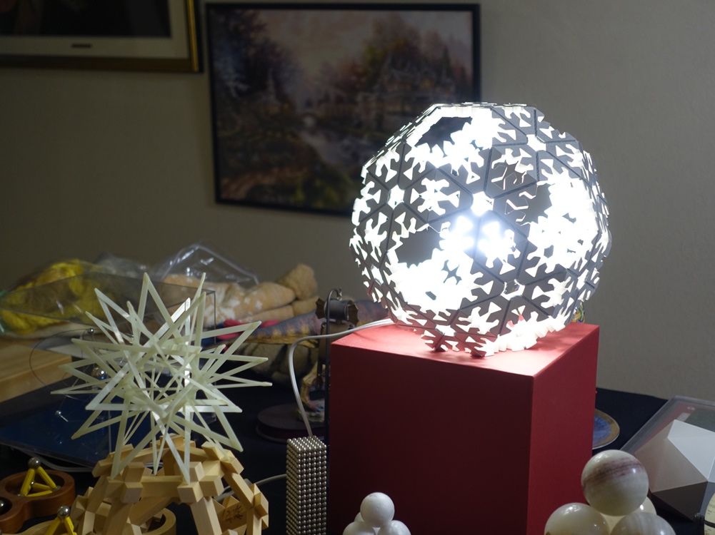 ずーっと、そのままにしてあった、木製の32面体に、工作して・・・電気スタンドに改造。