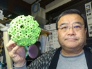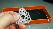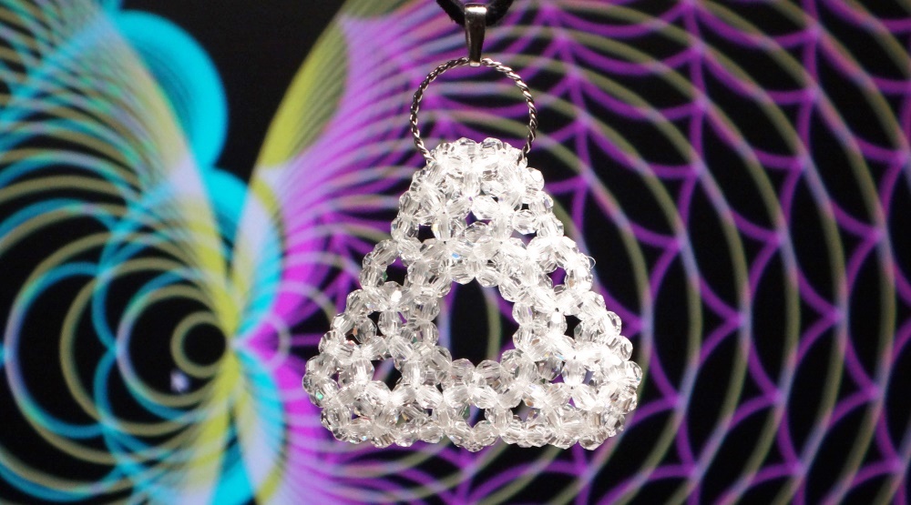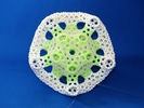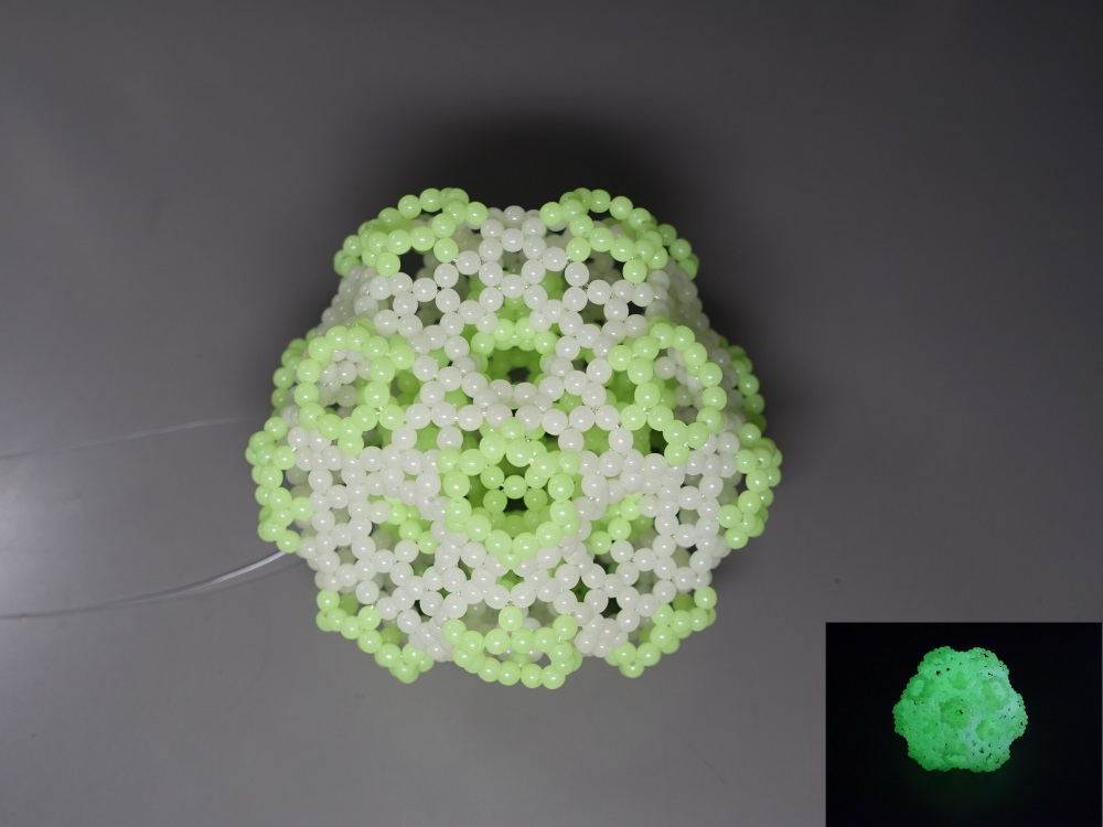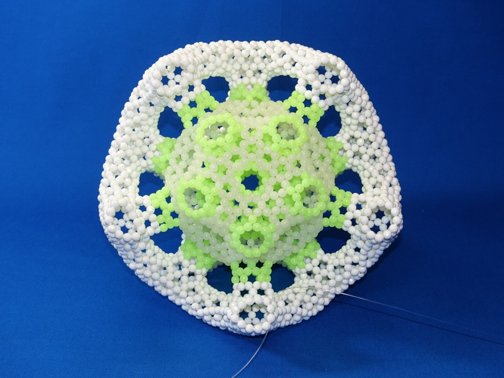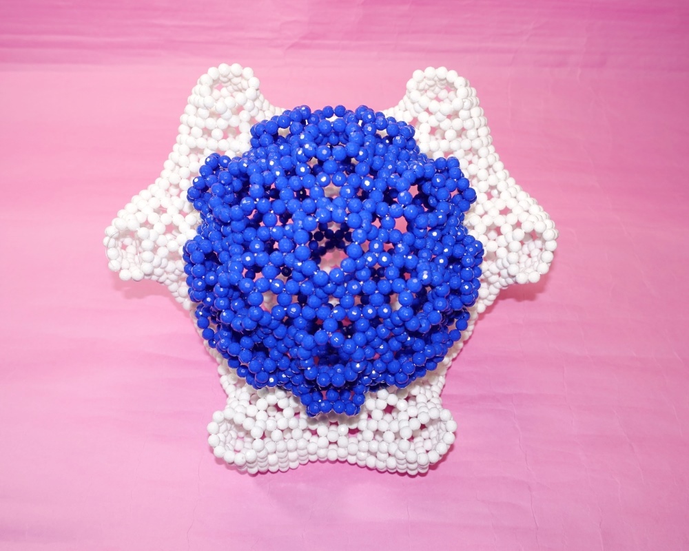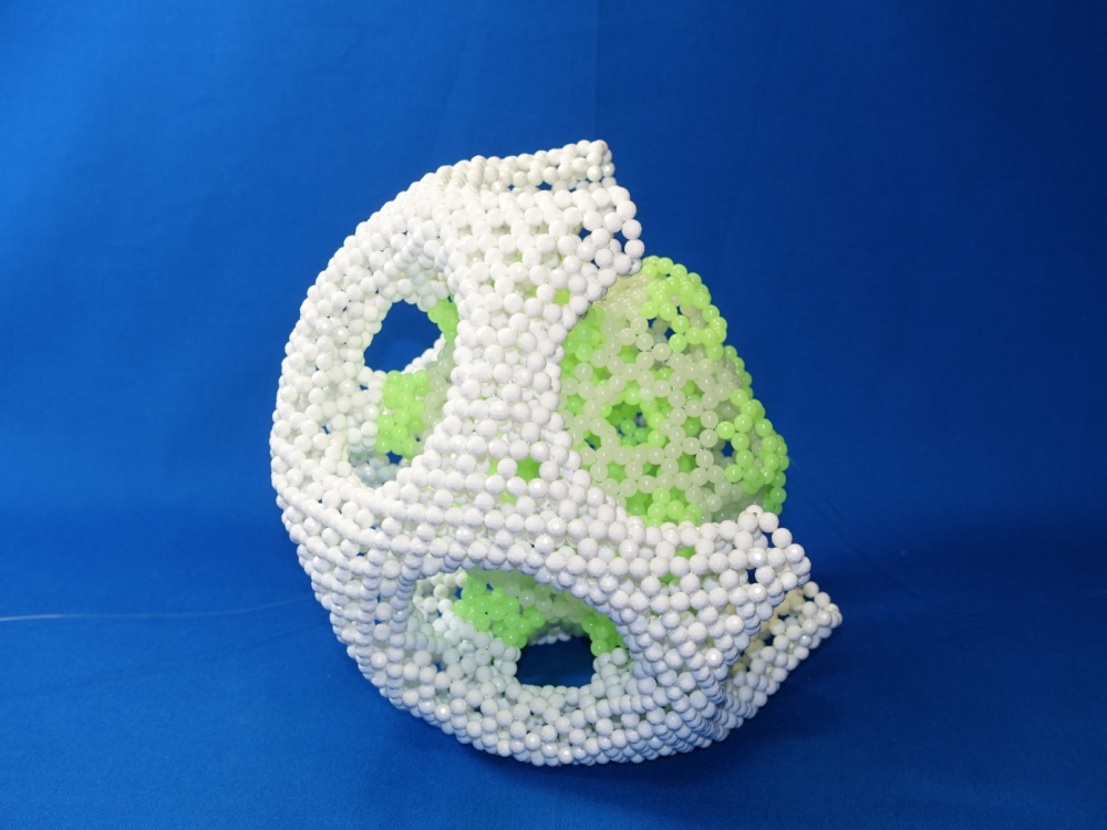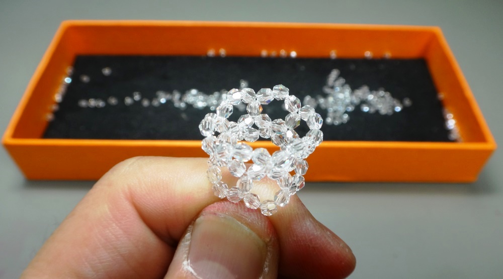 写真は、6角形を基本とするリングに角を3カ所出して、「穴あきおにぎり型」を作った。