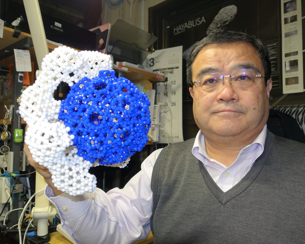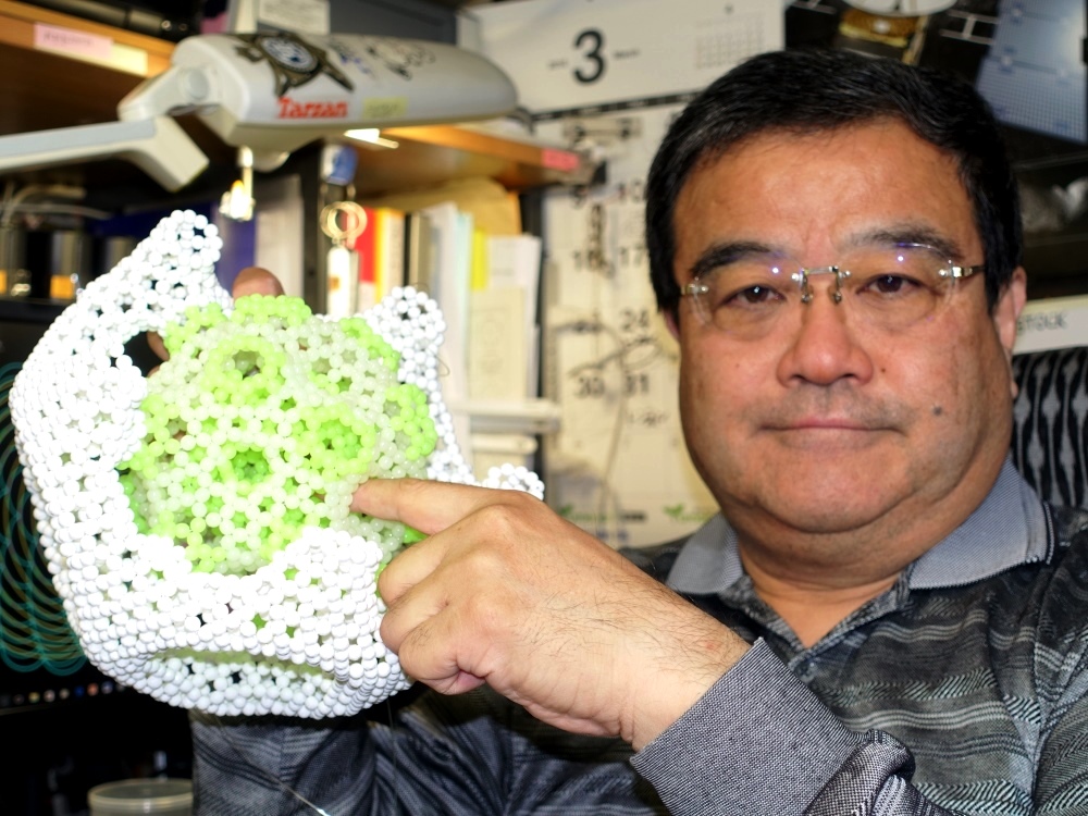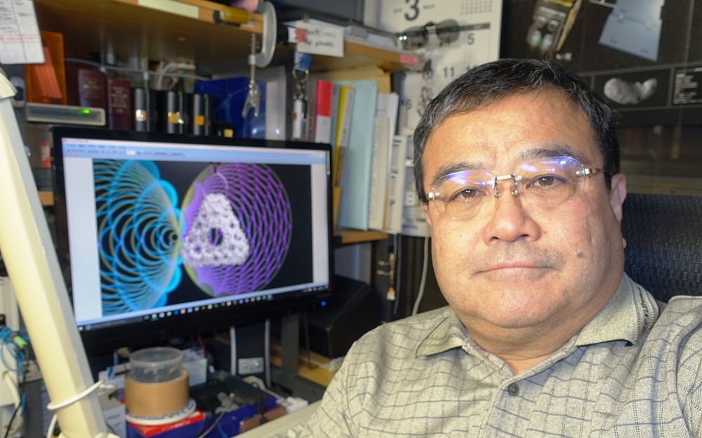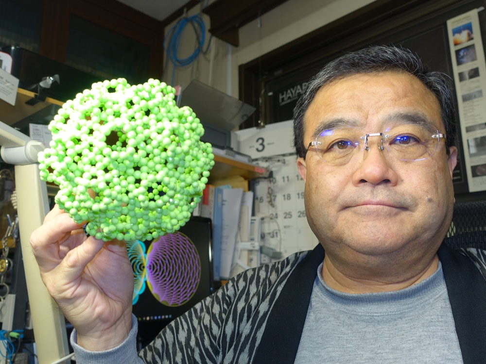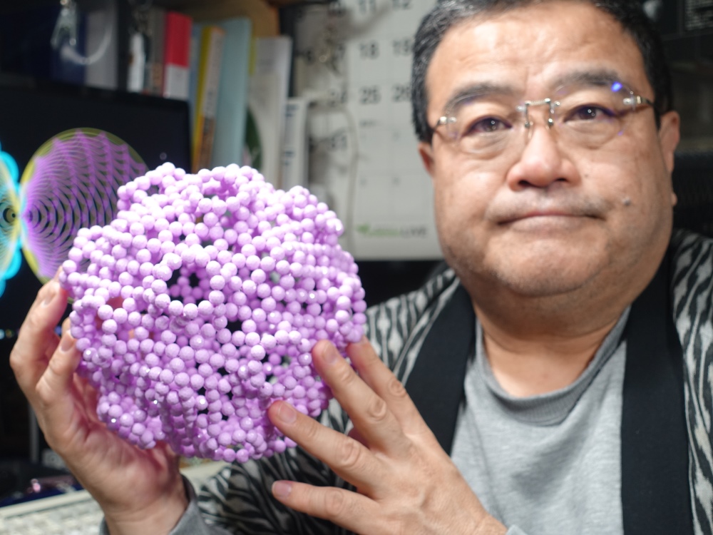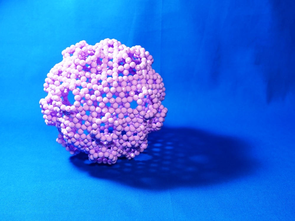 写真は、6角形を基本とするリングに角を3カ所出して、「穴あきおにぎり型」を作った。