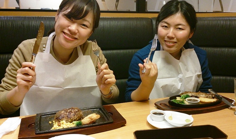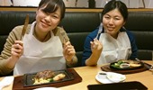 7時過ぎに、3名の若い女性の先生とステーキ・・・。