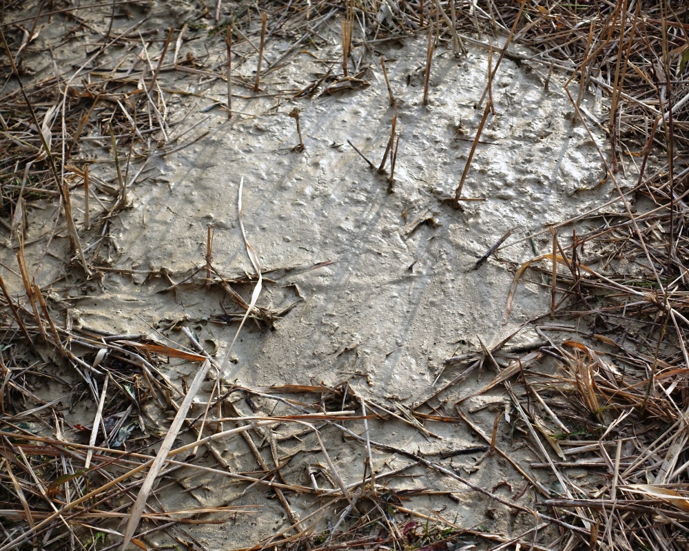 植田の新しい土地で、ボーリング調査をした跡に残った埋め戻しのコンクリートかな???