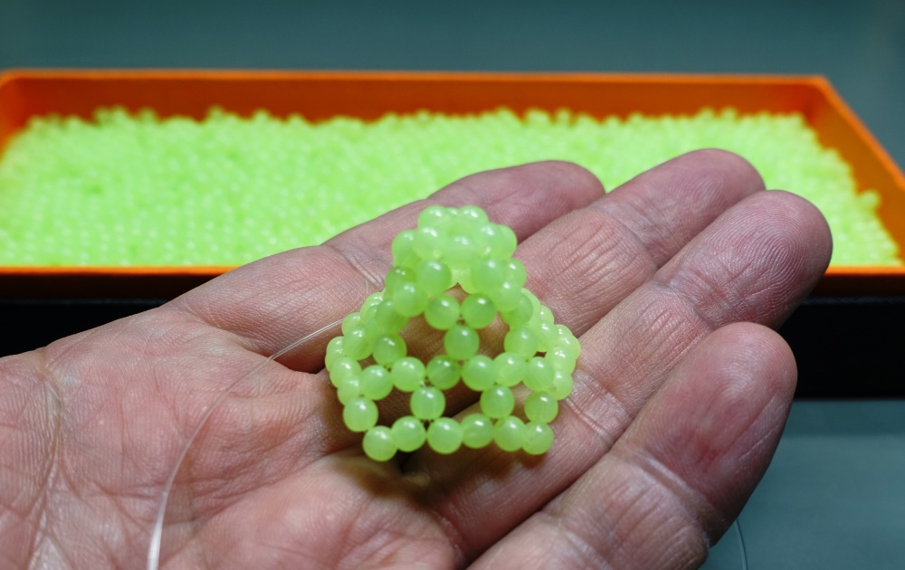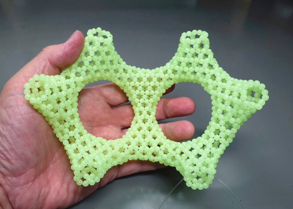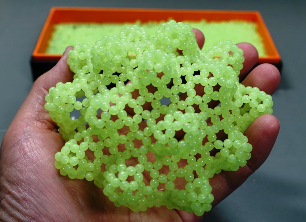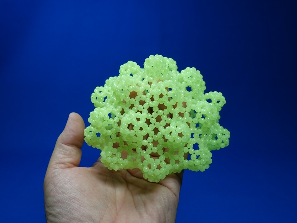 穴が一つまで編んで・・・撮影。そして完成させて記念撮影。(^_^)v
