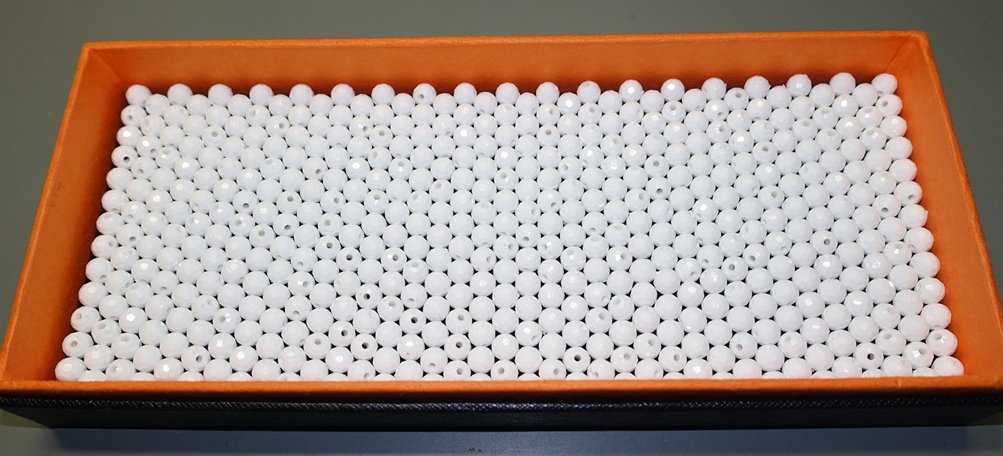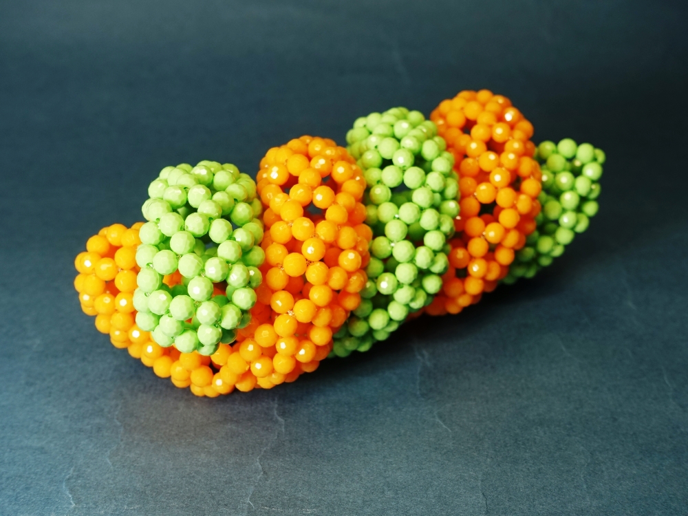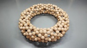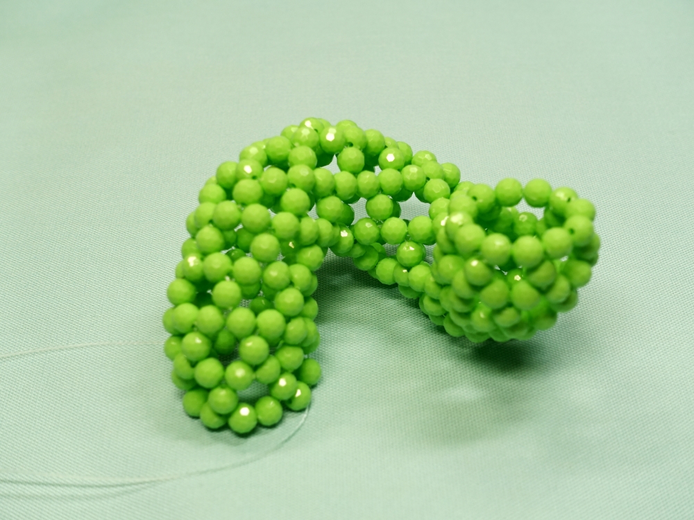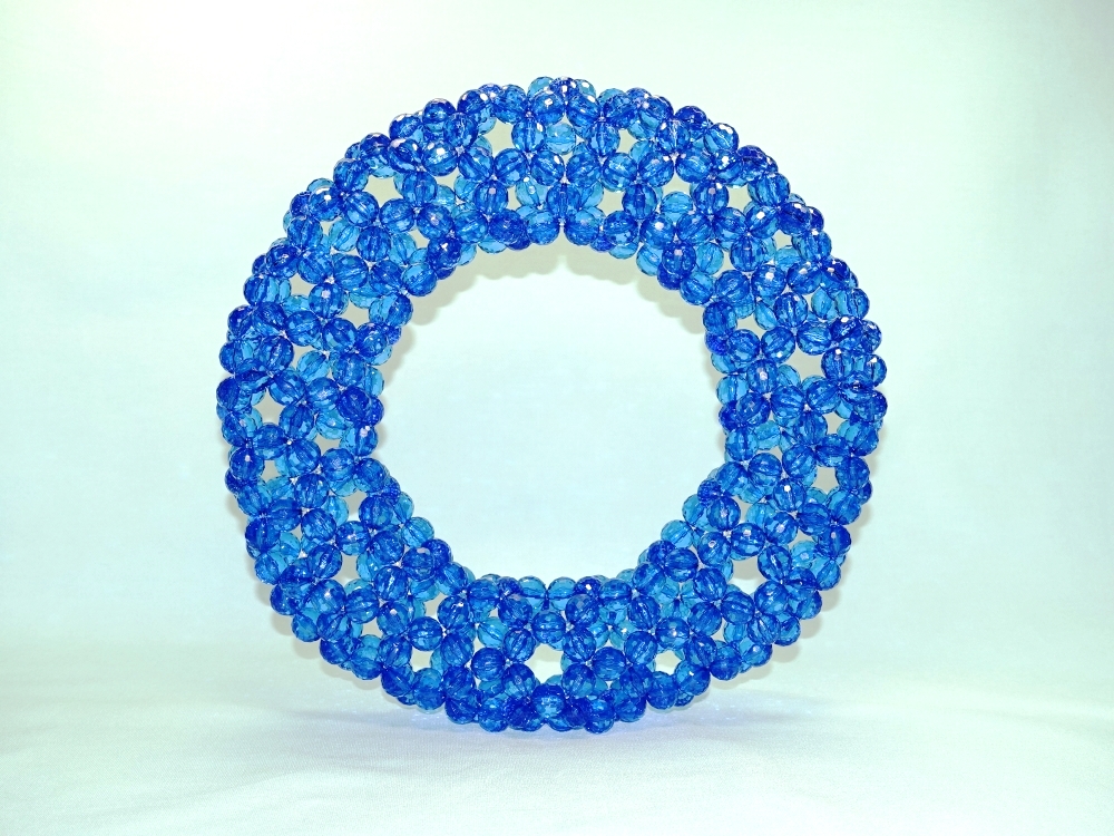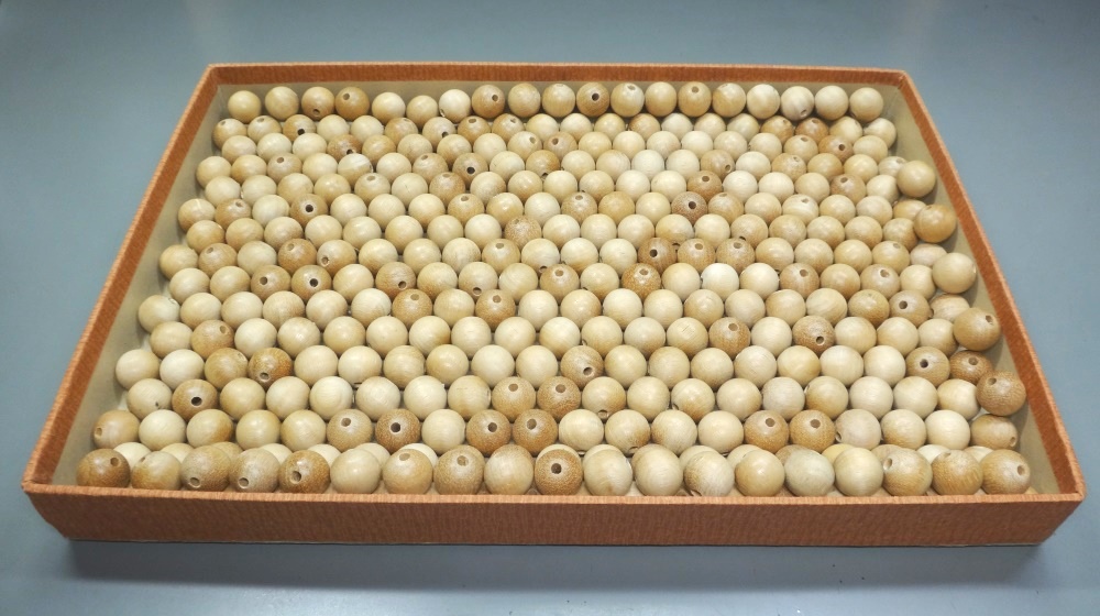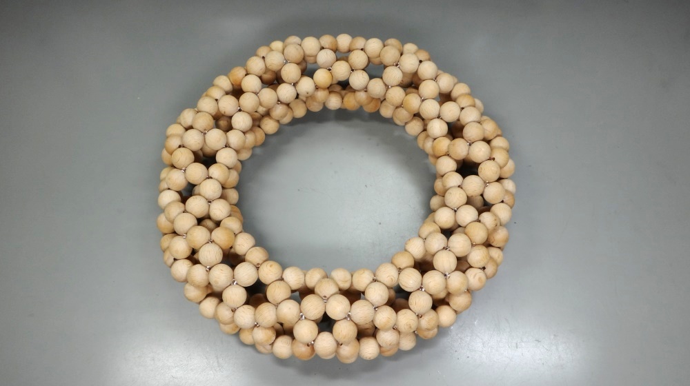 昨日、M本さんから頼まれた336個の木製のリングビーズ編みのゴムが切れたとのことで、テグスに張り替え。