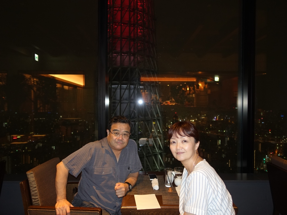 山内さんと二人で移動・・・ホテルにチェックイン後、スカイツリーへ移動。