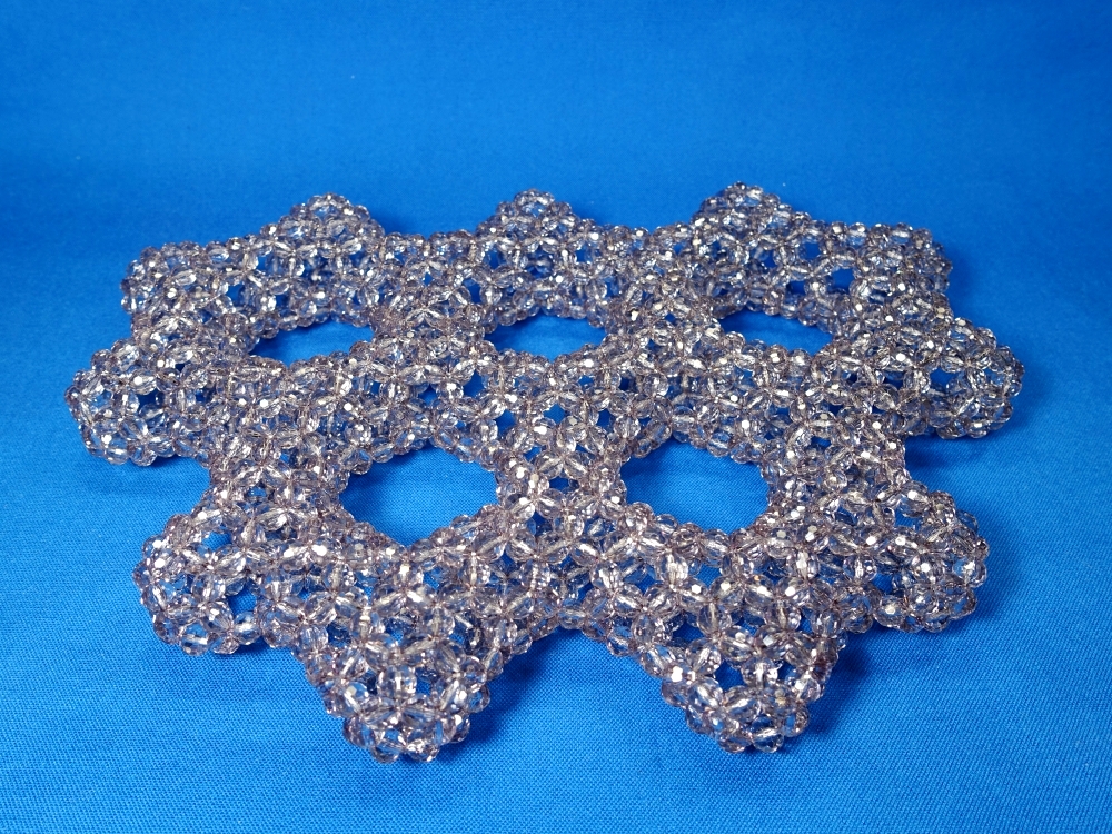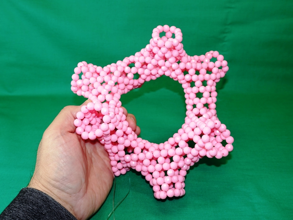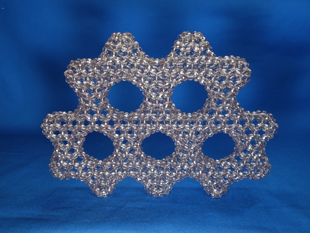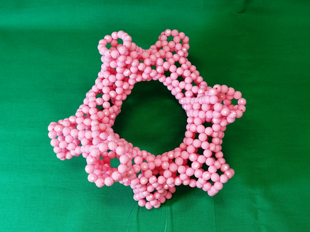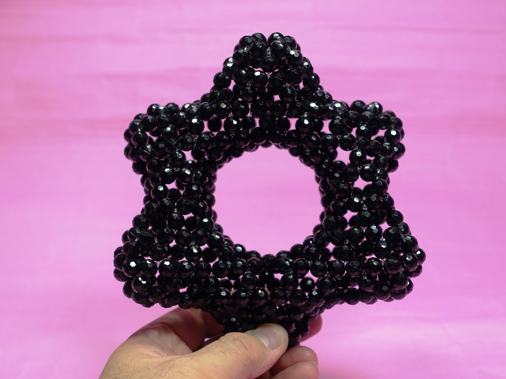 最初は、穴7つの六角形状に編む予定が・・・この色のビーズが足りなくなり、この形に落ち着いた。(^_^;)