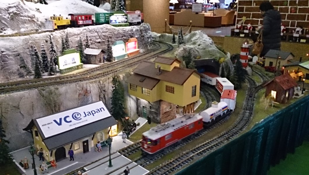 HILTON NAGOYA のロビーにて・・・大きなゲージの鉄道模型があった。