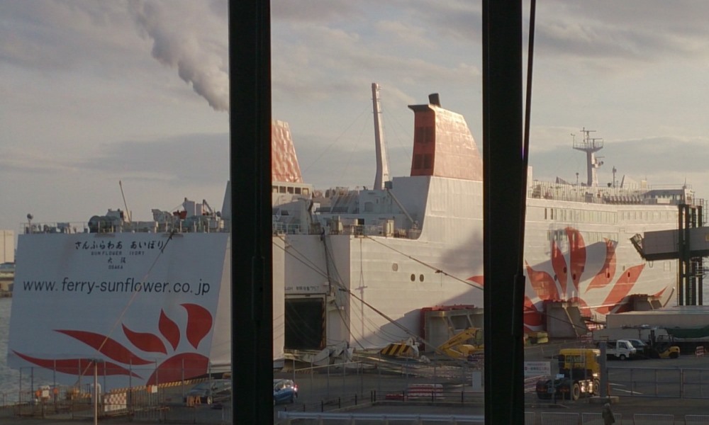 JR金山駅に集まり、車で大阪南港「サンフラワー乗り場」へ移動。