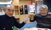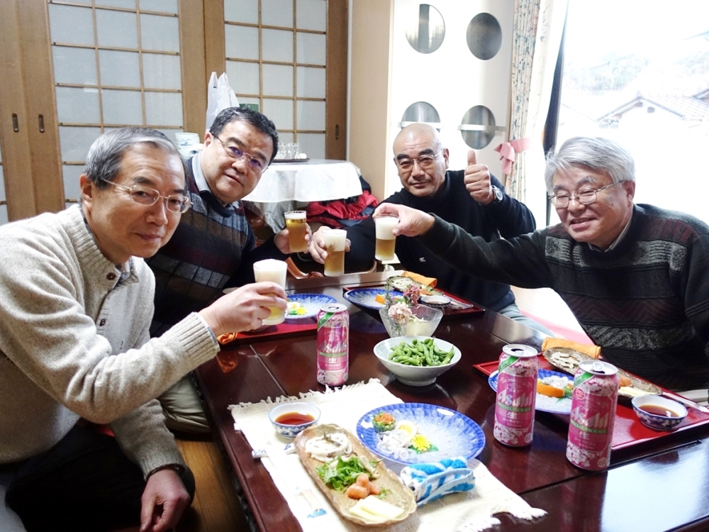 光市の藤本氏宅のリビングにて「乾杯」(撮影は、藤本氏の奥さん)