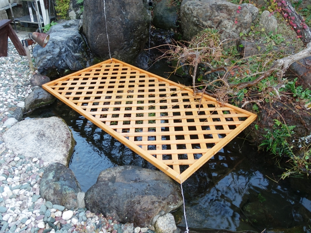 今年の冬の「鳥よけ(サギよけ)」の格子の板。
