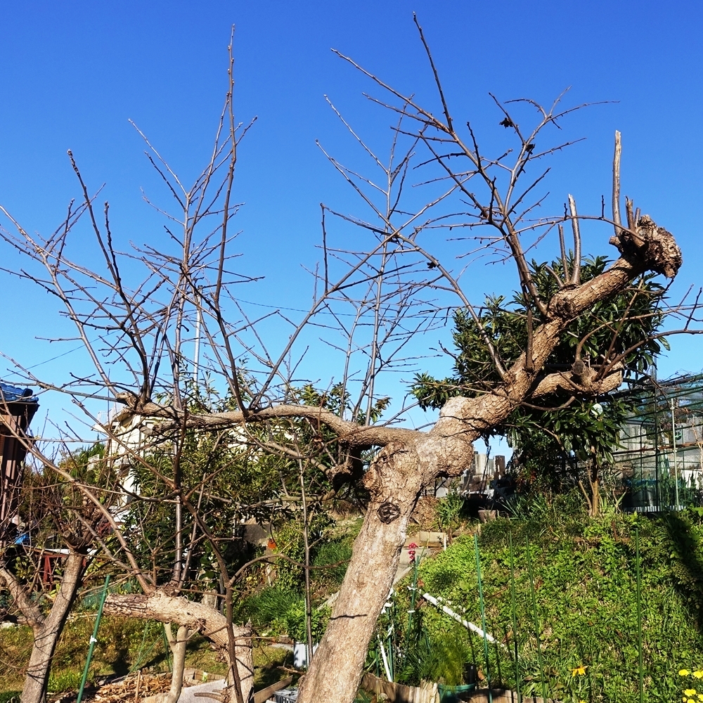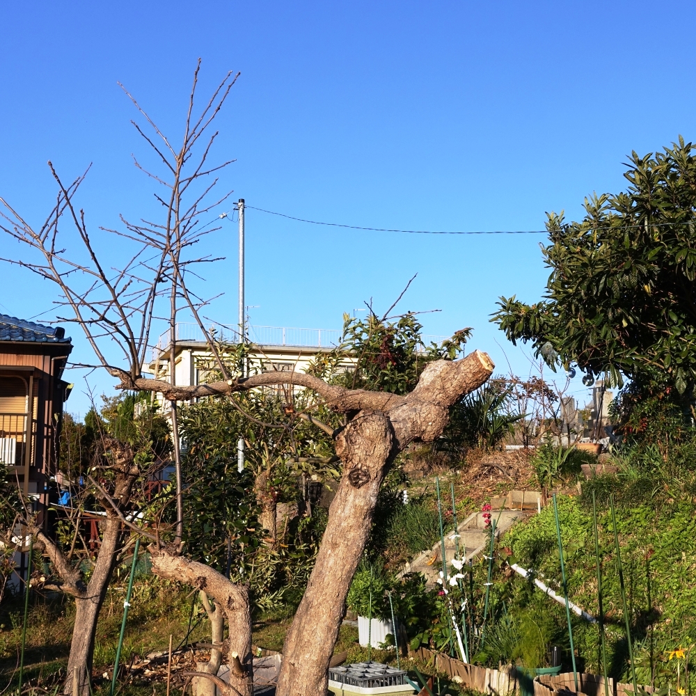 良い天気だったので、上の庭にある柿の木の枝を払う。