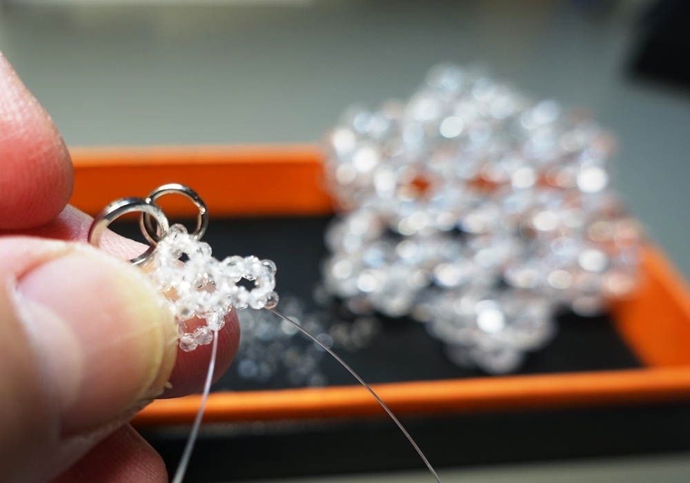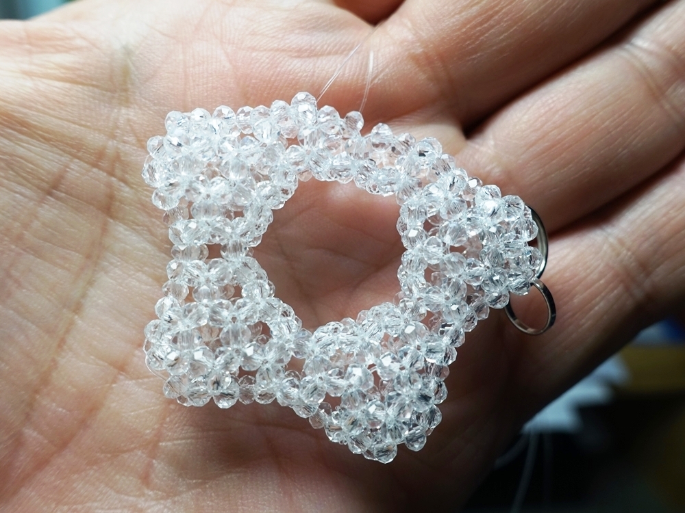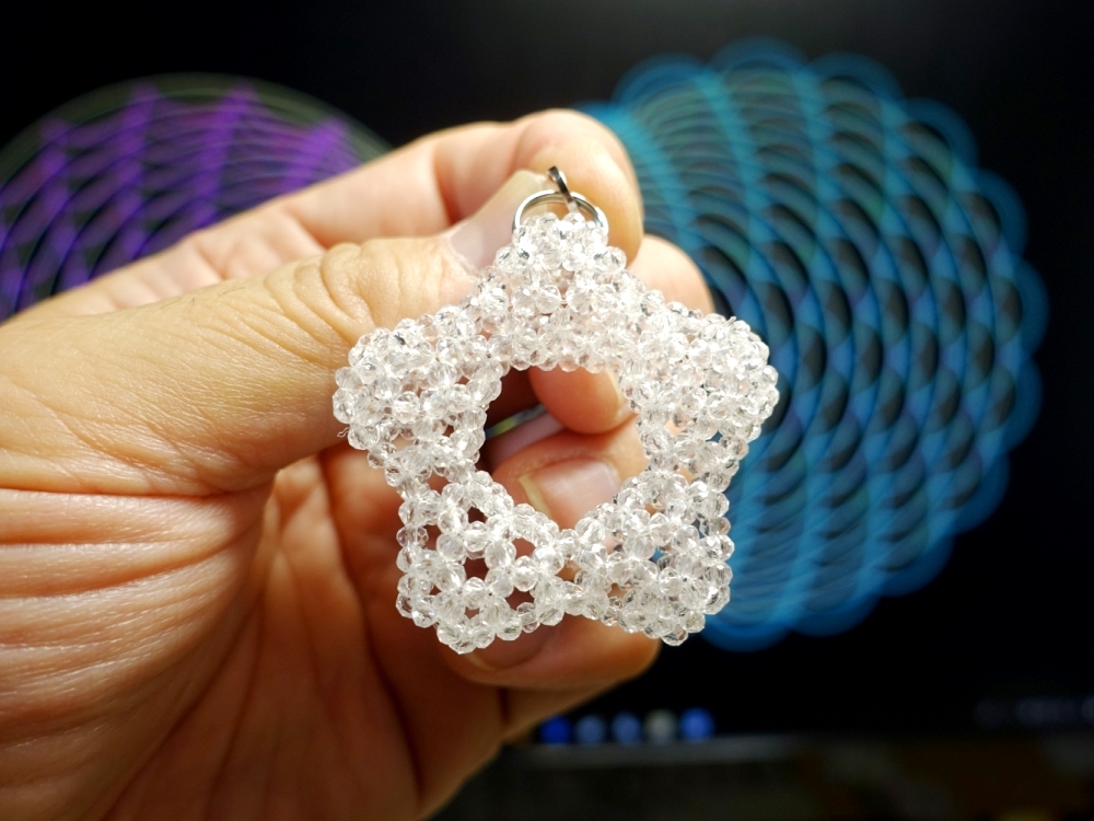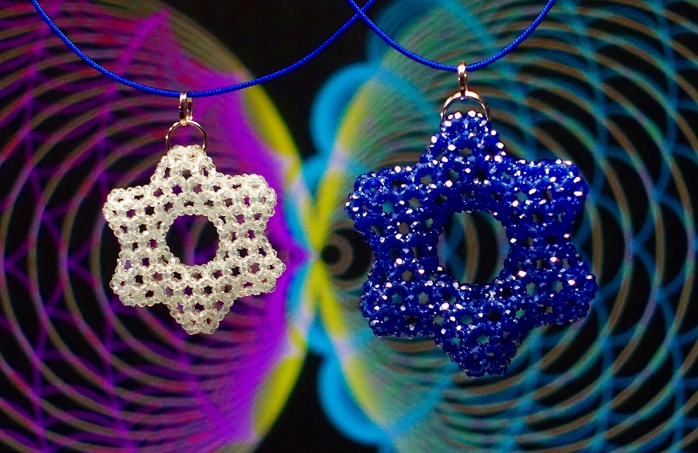 穴あきの六芒星タイプの「スワロビーズ」と「チェコビーズ」も作った。