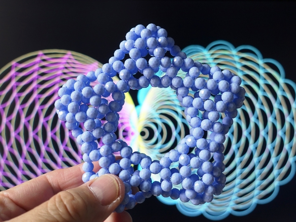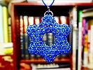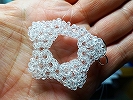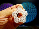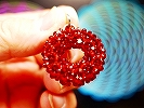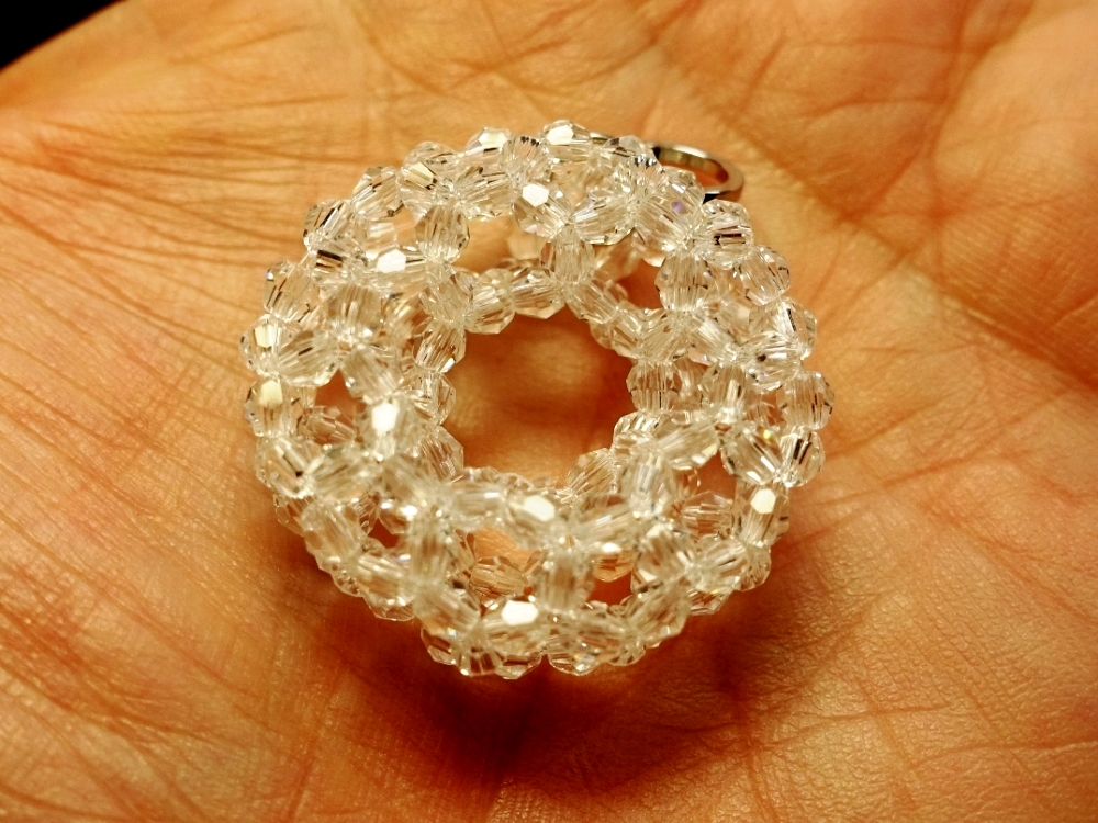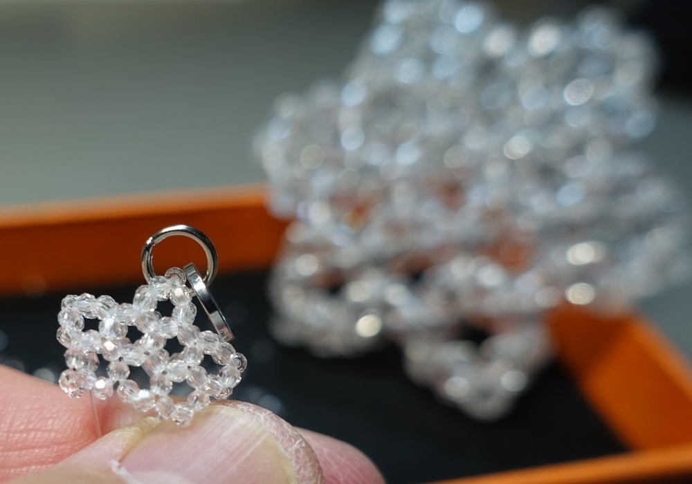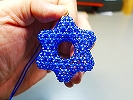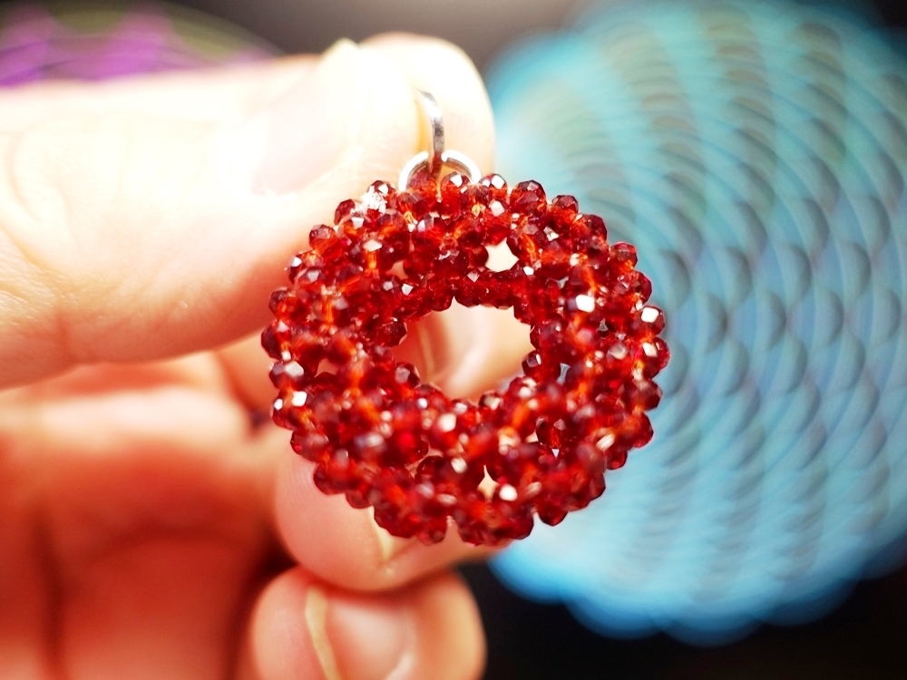 以前から作っていたものだが・・・ペンダントにならないかと、3mmの青いビーズで編んでみた。